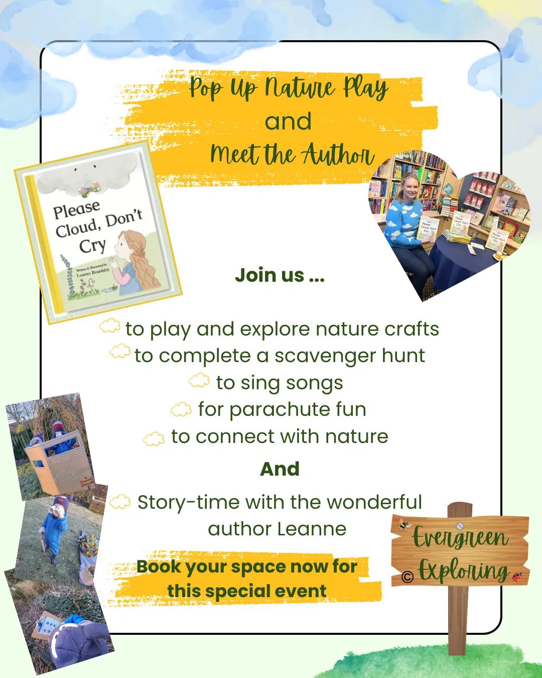 This is a truely unique event for your little one to enjoy a beautiful story read to them by the person who wrote and illustrated it and then enjoy nature play activities inspired by the book.